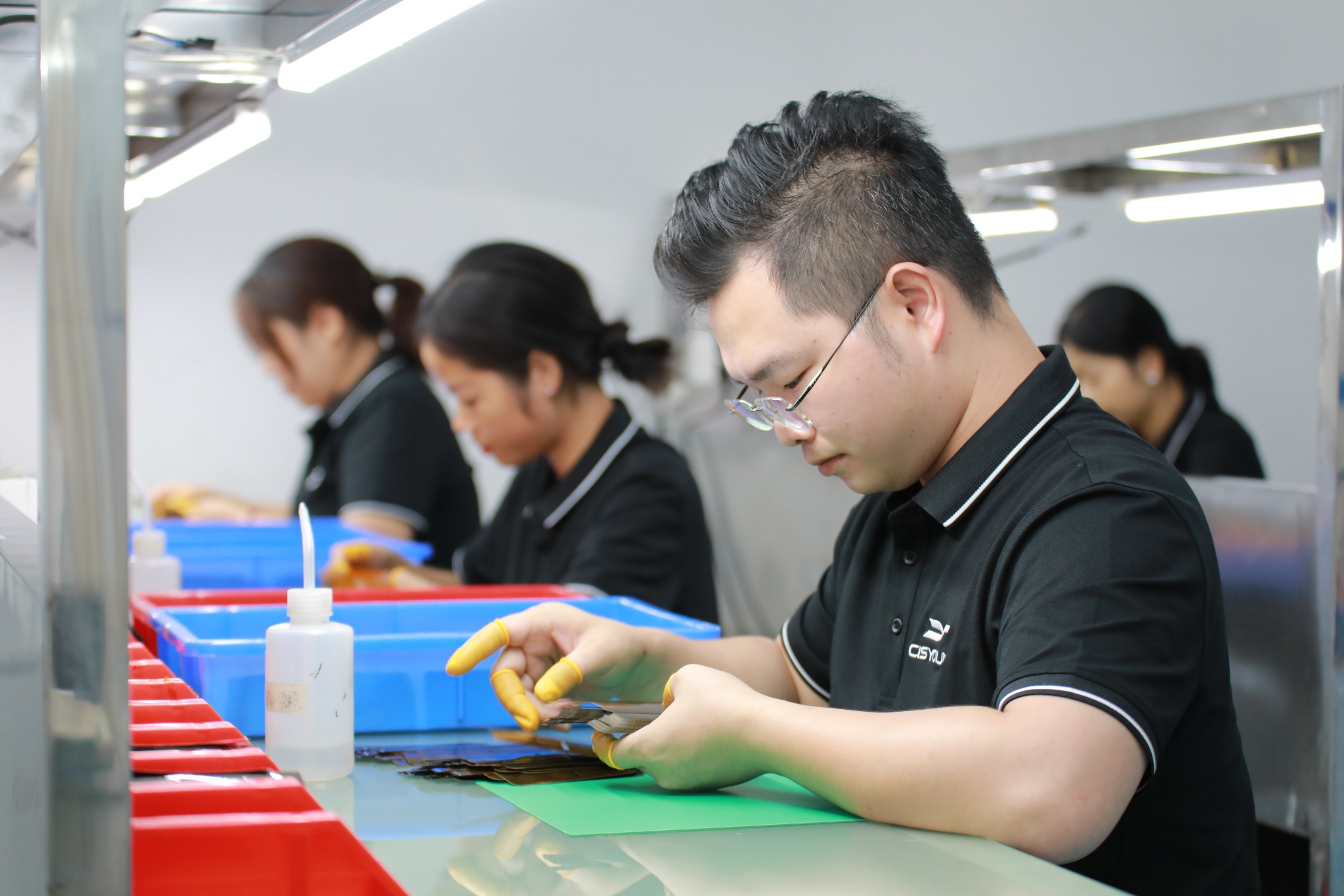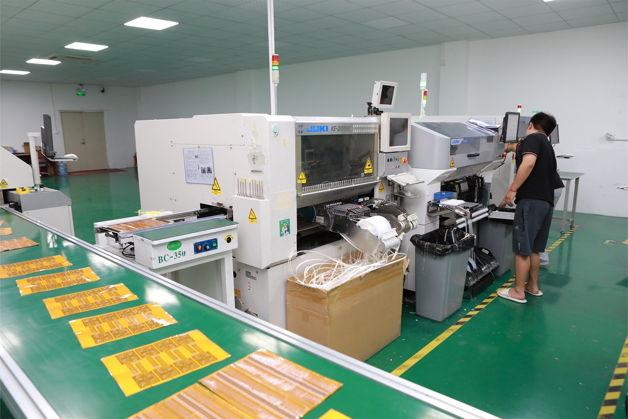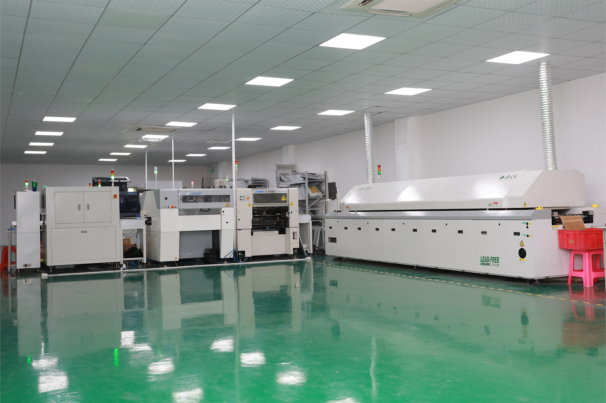 我司拥有FPC软板与Rigid-flex PCB软硬结合板的全制程设备,并组建了多条自动贴片线(SMT与DIP),同时引进了目前国际最先进的AOI检测机和X-Ray检测仪,并建立了内部智能电子物料仓,以迅速满足客户的BOM清单需求。 我们的生产设备包括自动开料机、自动钻孔机、化学蚀刻线、电镀线、自动靶冲机、全自动丝印机、自动补强机、真空压合机、激光切割机等,检测设备包含飞针测试机、治具测试机、二次元测量仪、金相切片机等,公司自动化程度达到86.8%。另外,我们建立了内部实验室,拥有高精度研磨机、剥离强度测试仪、盐雾测试设备等,用于来料检测、成品检测、异常分析。同时为了保证贴合过程的洁净度建立了千级无尘车间(严格控制微尘数量在每立方米1000个以内)。原材料上更是坚持使用美国杜邦、3M等知名品牌,从源头开始为客户的产品质量提供可靠保障。 驰信科技致力于以强大的生产实力为客户提供高质、高速、高量的生产服务。